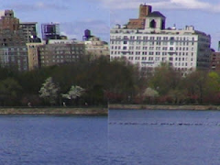 For the (are they ducks, well.. clone them out) But, for the sort of 'bankment' below the trees.. you can just copy a bit from the left.. and paste it, rotate it.. etc.