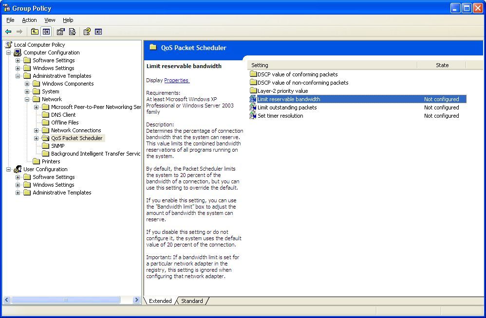 Step 3. In tree view select Local Computer Policy -> Administrative Templates -> Network -> QoS Packet Scheduler